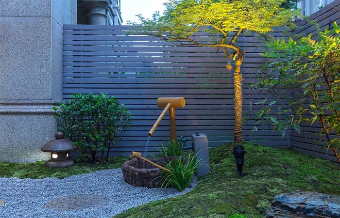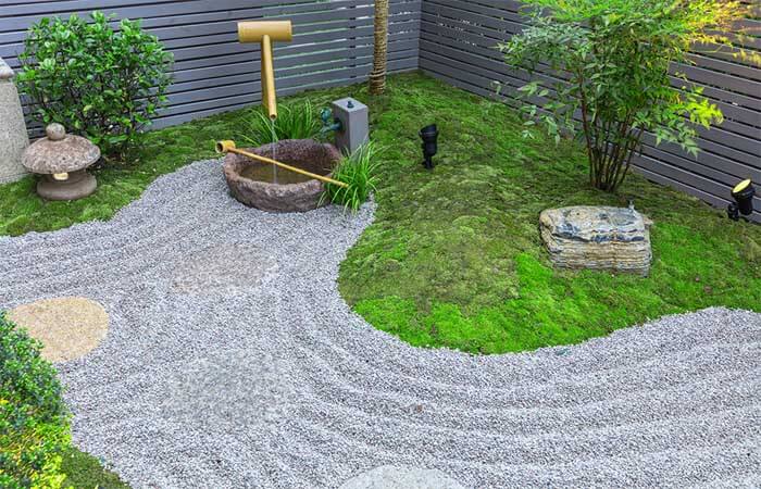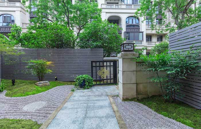 項目介紹:花園還未改造前,門前四周都擺放了常春藤,彩葉葛和各類花草,面積雖小,但業主希望把現有的植物充分利用起來,一花一草的精心打造,能讓業主在小花園中享受精致的花園生活。鐵藝門與石墻上的燈皆為一體,排列設計恰到好處,讓人一入門***感受到了家的溫馨,花園用了一個較為高大的羽毛楓做主打樹,其次用了一棵稍矮一點的中低樹蘭天竹,用來襯托和增色,******的大石不用多,一兩塊***夠,擺放在靠近植物的區域,讓石頭成為主角。園中應用了業主喜歡的苔蘚,業主欣賞苔蘚那樣微小的生命里透出一股無限的生機,帶有對生命的渴望。青苔的生長是悄無聲息的,慢慢侵入你的生活,經歷了歲月風雨之后便悄然成為你園中那一抹翠綠。放上極簡凈化心靈的石缽,充滿了禪意,一下子提升了整個花園的品味。砂不是沙子,日文砂礫,指的是碎石、鵝卵石。這里的砂礫大面積運用,代替了草坪,石燈籠將日式的純粹進行到底。